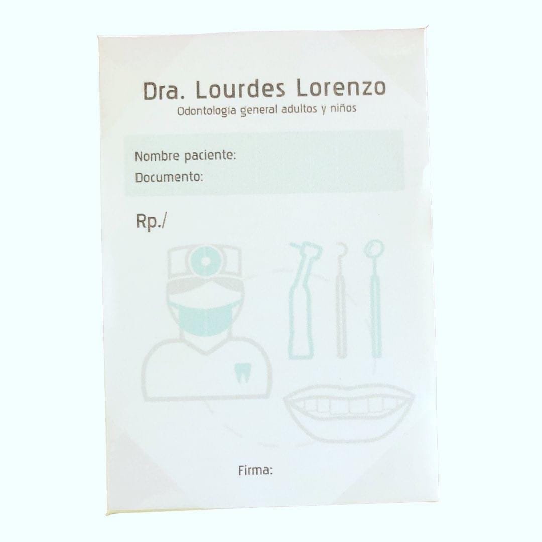 RECETARIOS PERSONALIZADOS LOGO COLOR 10 LIBRETAS DE 50 HOJAS ENGOMADAS CategoríasGRADUACION ULTIMOS EN STOCK / IMPERDIBLES PROMOCIONALES PAPELERIA Y PAPELERIA PERSONALIZADA IDENTIFICACION / PORTA ID / CORREAS INDUMENTARIA / ACCESORIOS ENFERMERIA / MEDICINA ODONTOLOGIA HIDRATACIÓN RECETARIOS PERSONALIZADOS LOGO COLOR 10 LIBRETAS DE 50 HOJAS ENGOMADAS$1.800 Recetarios personalizados 10 libretas de 50 hojas Formato a eleccion RECETARIOS PERSONALIZADOS LOGO COLOR 10 LIBRETAS DE 50 HOJAS ENGOMADAS cantidad Comprar ahora SKU: 1800 Categoría: PAPELERIA Y PAPELERIA PERSONALIZADA También te recomendamos… RECORDATORIOS DE CONSULTA 1000 UNIDADES $1.700 Quick viewAñadir al carrito HISTORIAS CLINICAS PERSONALIZADAS Quick viewVer productos Productos relacionados PRESUPUESTOS PERSONALIZADOS 10 LIBRETAS DE 50 HOJAS ENGOMADAS LOGO COLOR $1.800 Quick viewAñadir al carrito LAPICERA PROFESIÓN $100 Quick viewAñadir al carrito LIBRETA TAPA DURA 60 hojas rayadas espiral, con post it y lapicera $380 Quick viewAñadir al carrito LAPICERA KRAFT tinta azul comun $100 Quick viewAñadir al carrito